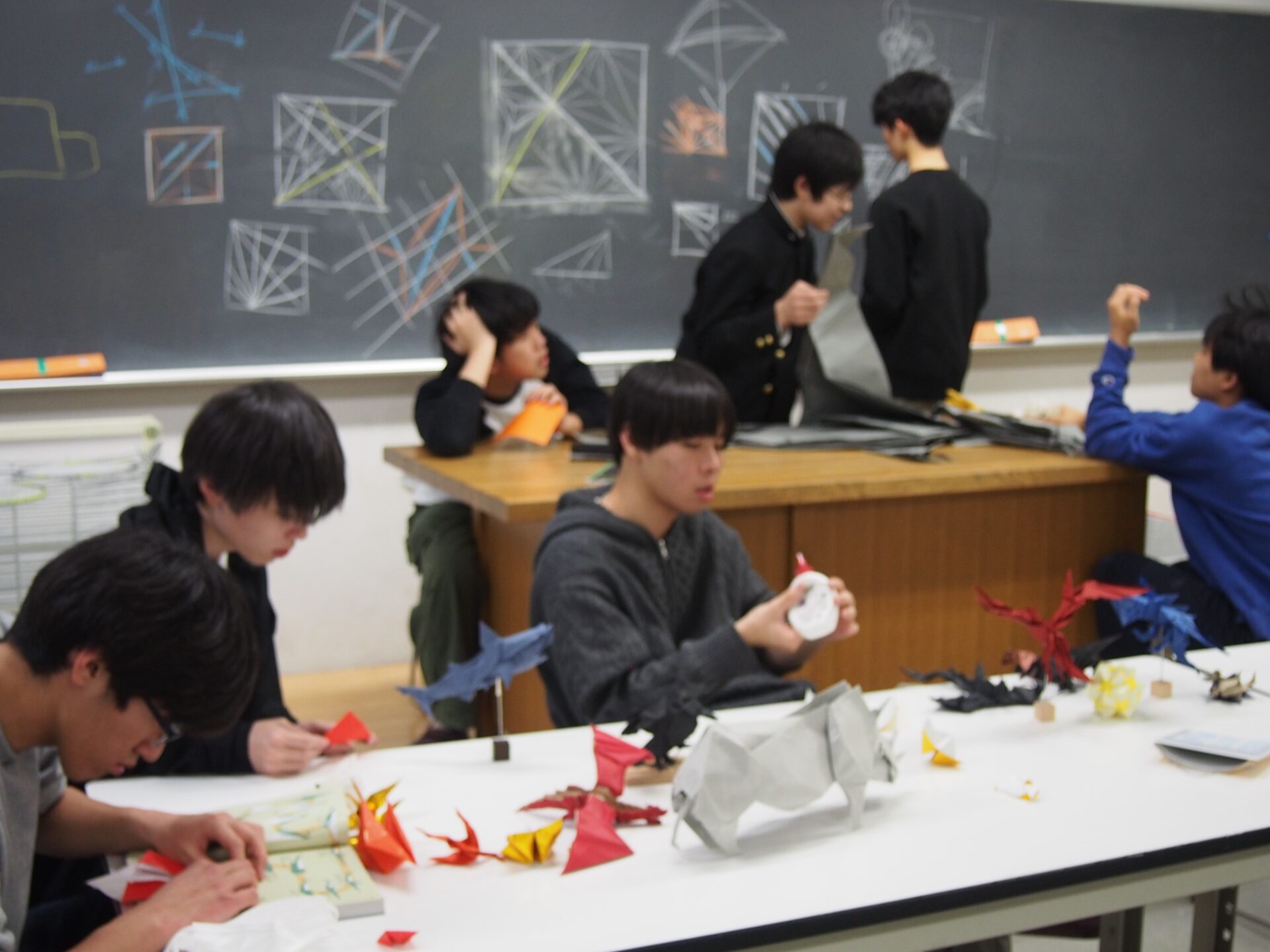 写生画、イラスト、陶芸、彫刻など、取り組むジャンルは違っていますが、お互いの制作に刺激を受けながら、自分の世界を広げていけるのが桐朋美術部の特徴です。近年では、創作折り紙に熱中する部員が増えています。デッサンなど、基礎的な造形の力をつける取り組みもおこない、より深く、見る・感じる・表現することも課題にしています。
