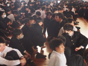 本日、1限の時間に、中学2・3年生と中学1年生の対面式が体育館で行われました。
